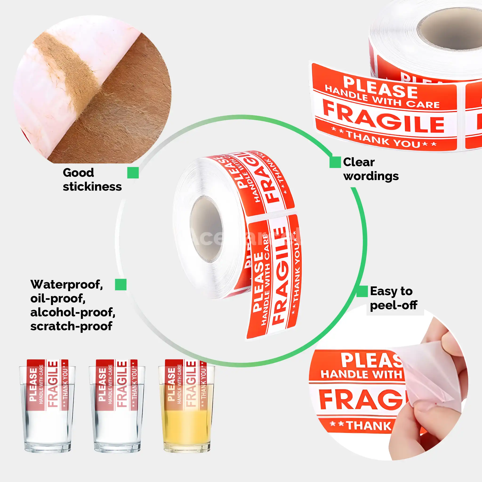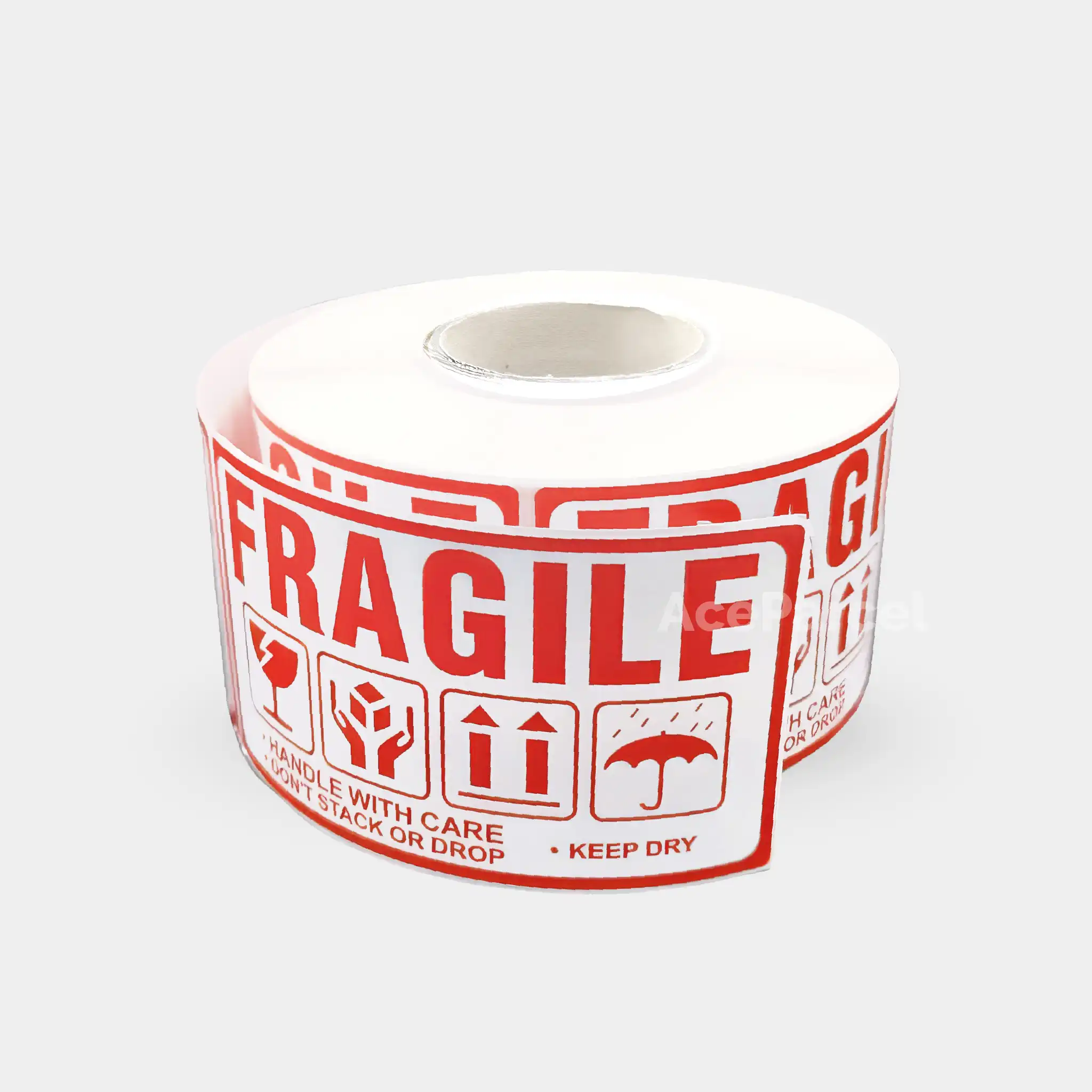 High-contrast printing ensures the fragile message is immediately visible to couriers and warehouse staff.